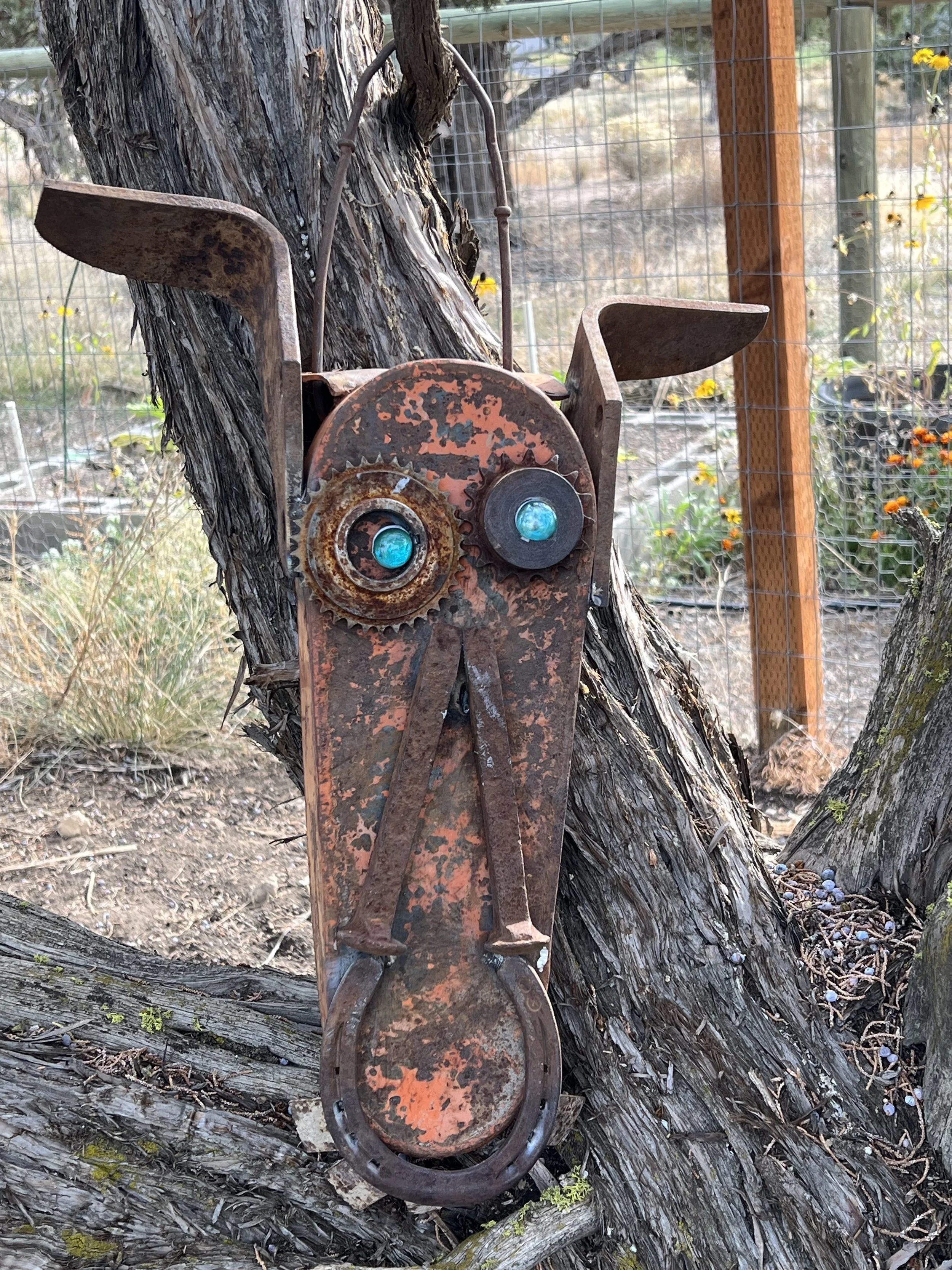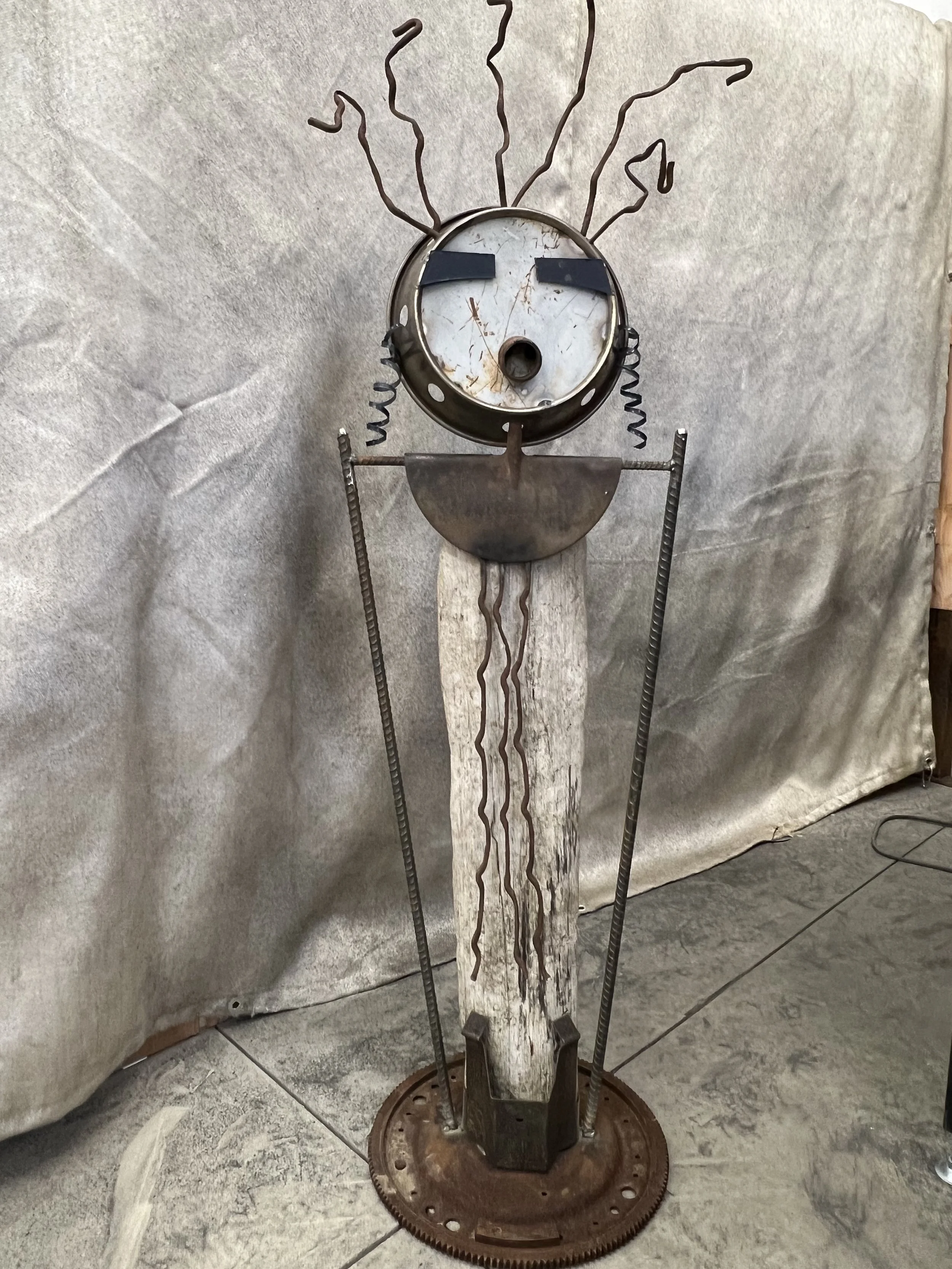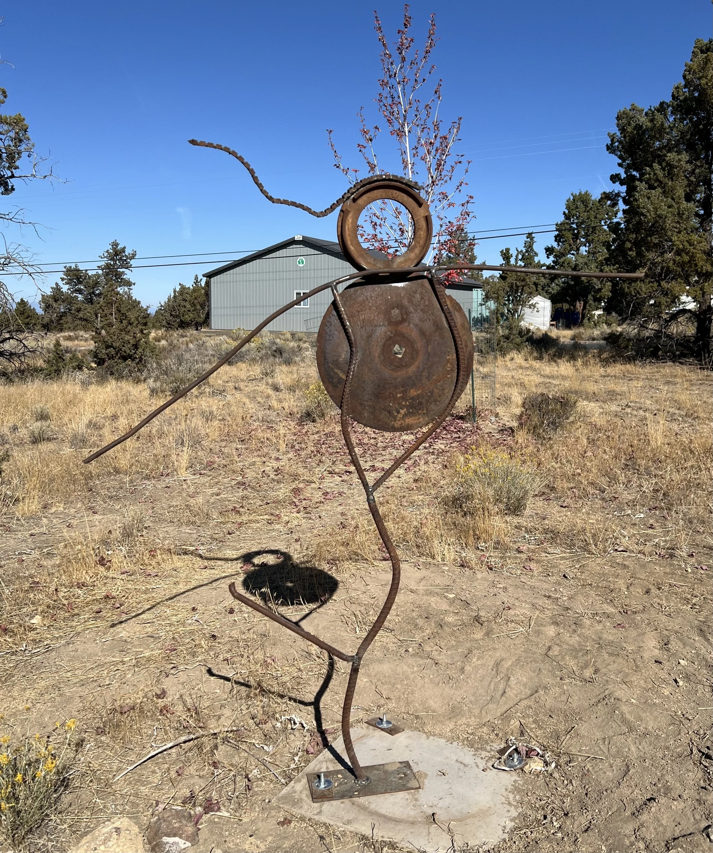 Kurt Kempcke is a metal sculptor living in Central Oregon. His folk art pieces are born from scavenged and recycled metal, a vivid imagination, a sense of humor, lots of sparks…..and the occasional flesh wound.