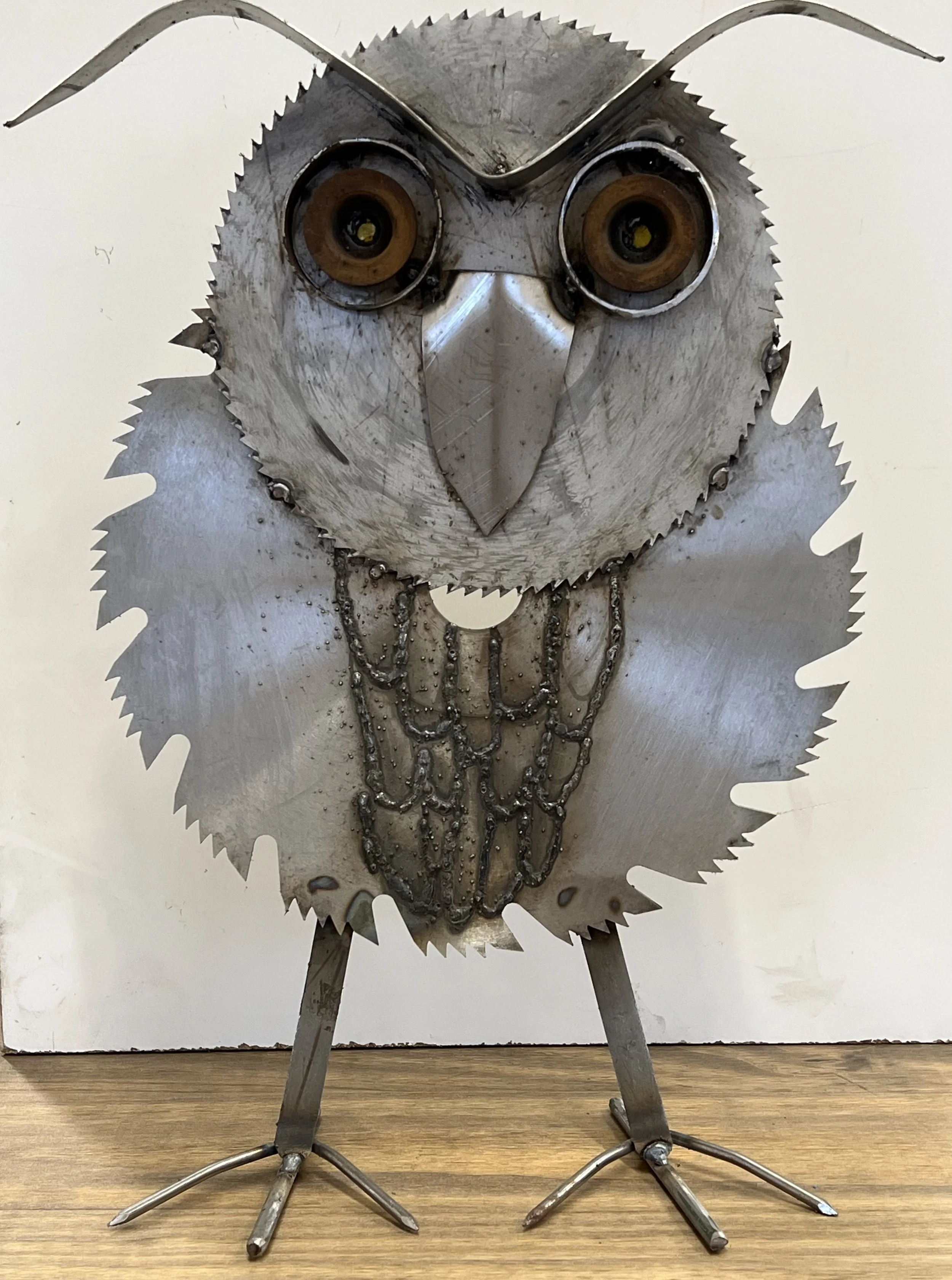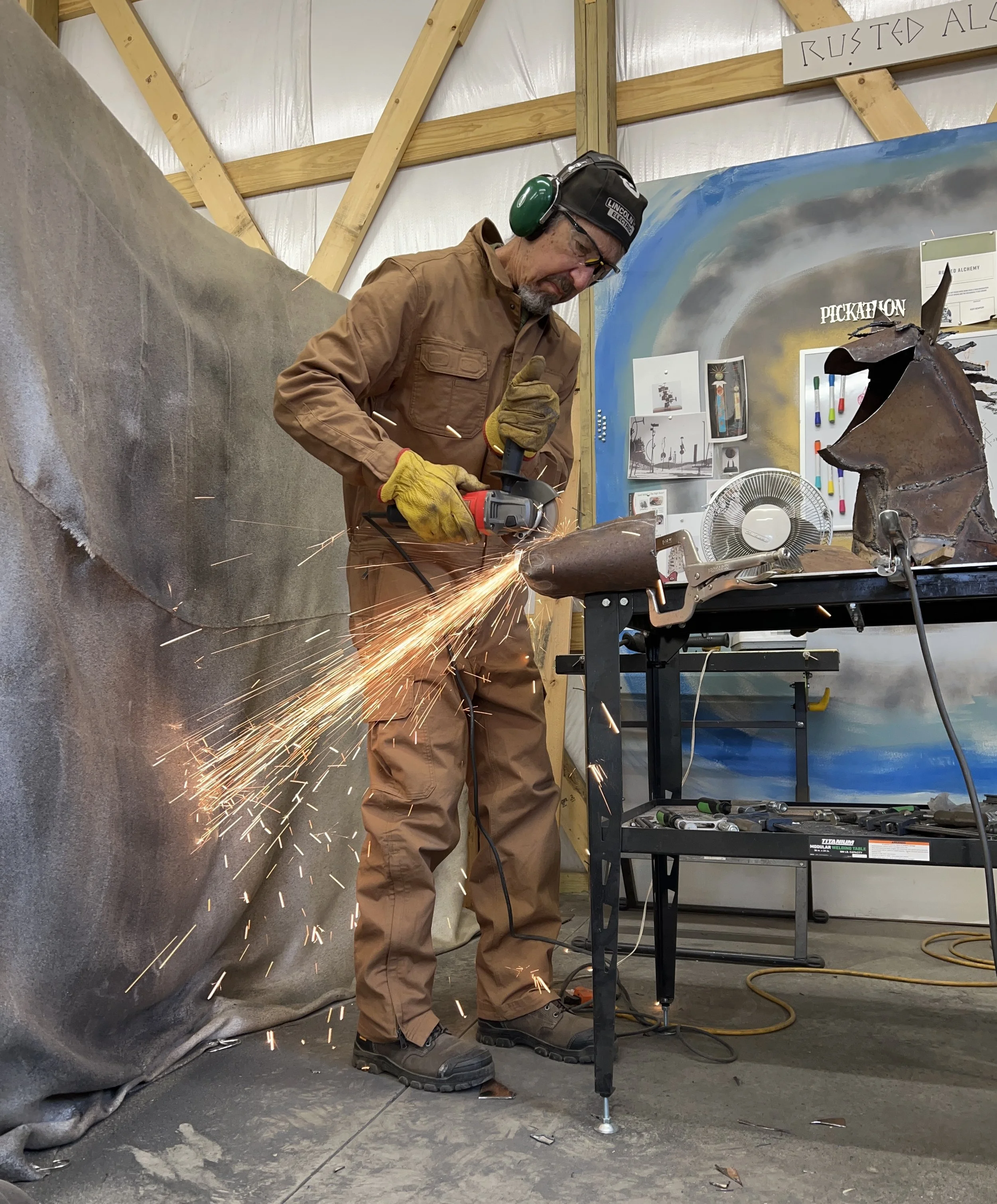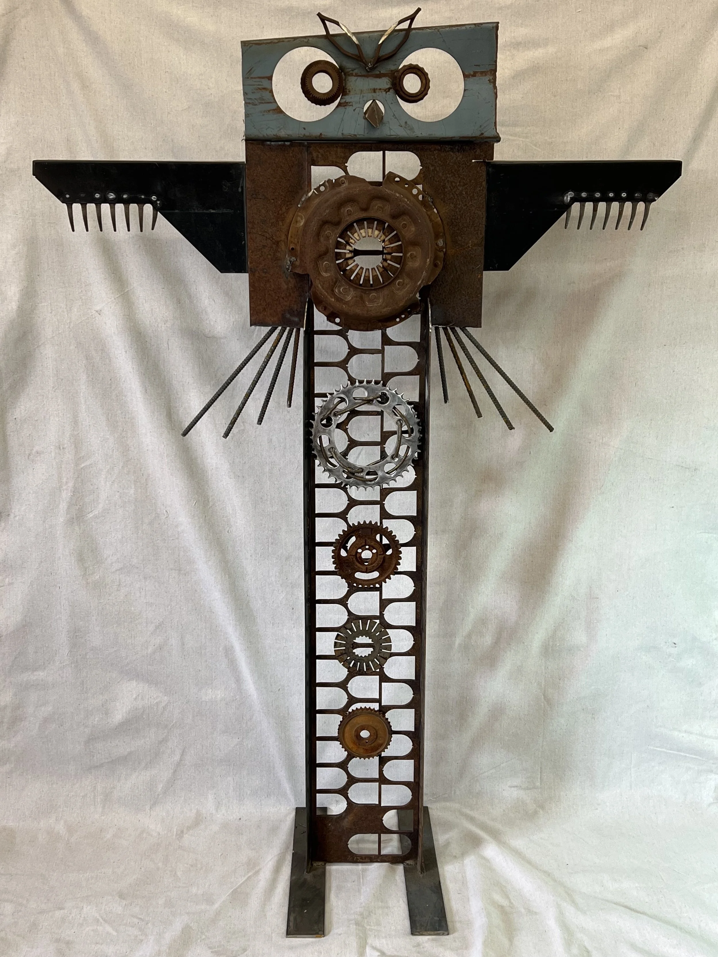 Kurt Kempcke is a metal sculptor living in Central Oregon. His folk art pieces are born from scavenged and recycled metal, a vivid imagination, a sense of humor, lots of sparks…..and the occasional flesh wound.